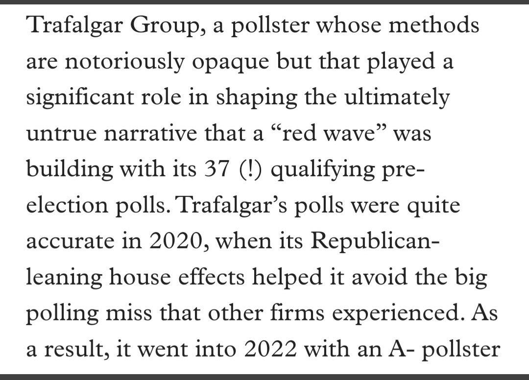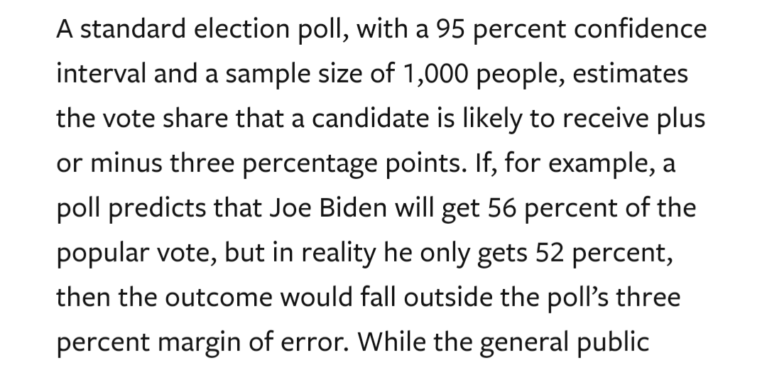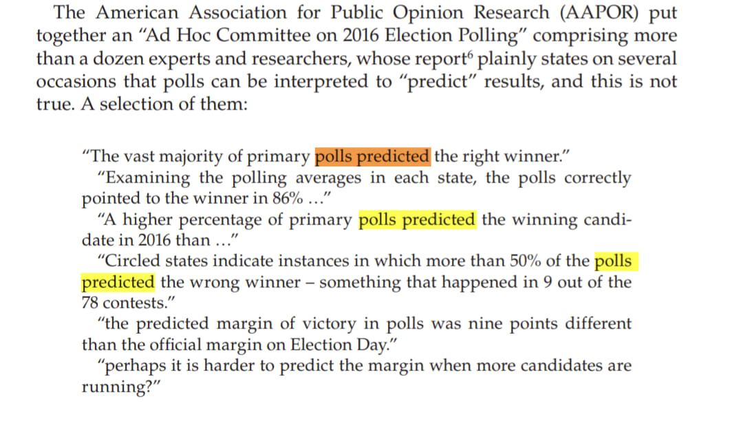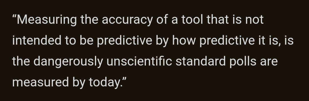The fact that literal experts say, write, and publish “the polls predicted” in their work is not just evidence - but proof - they don't understand them. And for that reason, outside of circles of people who I know have read my work or been forced through this interaction with me, I prefer to not use the term “predictive” at all, because this topic is clearly not well understood.